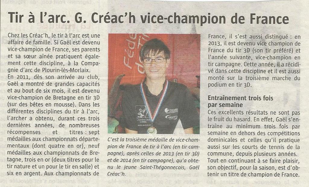 Gaël CREACH Vice Champion de France Tir Campagne 2015