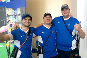 Face aux Russes, l’équipe de France répondait coup pour coup, enchaînant les bonnes flèches, volée après volée. Avec une avance confortable de 2 points lors de la dernière volée, les Bleus ont pourtant eu très peur : une seule flèche à 10 points, deux autres au 9 remirent les compteurs à zéro entre les deux équipes, obligées d’en découdre au tir de barrage ! Un barrage dont les deux équipes se souviendront encore longtemps… ! Chaque archer a tiré 9 points, rarement vu à un tel niveau de compétition ! C’est finalement la flèche tirée par Jean-Philippe Boulch qui sauve la France sur le fil, l’impact de sa flèche ayant été jugé au plus près. Médaille de bronze pour l’équipe de France ! |